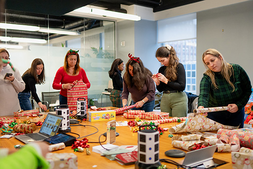 Bring teams together in-office for a festive, collaborative activity—wrapping toys from local shelter kids’ wish lists to spread holiday joy.